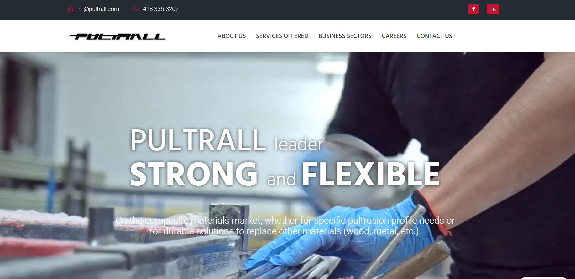 Pultrall makes pultrusion machines that make sure the fibers in GFRP rebar are always lined up the same way and have the same mechanical properties.